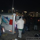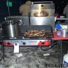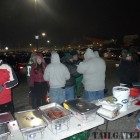 Wow, this was by far the coldest game ever. It was in the teens and with the windchill it was negative below out there for this final game of the season, a Sunday night national game with huge implications for the team, “win and we’re in!” This game called for everything we had, so that meant a Uhaul trailer full of all our gear. It was so cold out there that beer was literally turning to slush in people’s cups! Let me tell you, it is 3 times as hard cooking for a group in that kind of weather, which in addition to the bitter cold there were 35+ mph winds. But irregardless of the weather, it was a great night and an unbelievable night, with a Jets win to send them into the playoffs and to send off the Meadowlands with one final green and white confetti blast!
