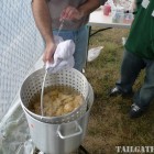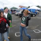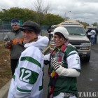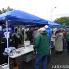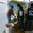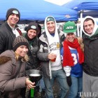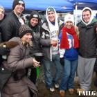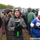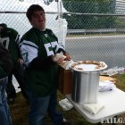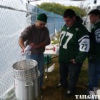 Well, after being able to count the number of rain games over the last five years on one hand, we had our second home game in a row with some weather that just didn’t want to help a brotha out. As I pulled into the lot I could see a mess of tents all over the place just blowing away and getting torn apart. After about 45 minutes of rigging by some of the boys, we got all three of our tents up and got the party started. It turned out to be a great day with about 50 people showing up! We were a little short on equipment due to some car trouble so we were working off of one grill and a crappy turkey fryer that just did not work, but Chef Sal ” made shit happen” as he always does! In addition to some great wings, it was the debut of Sambuca’s Cafe Cannolis, which were a huge hit! Here are a few pics from the party….