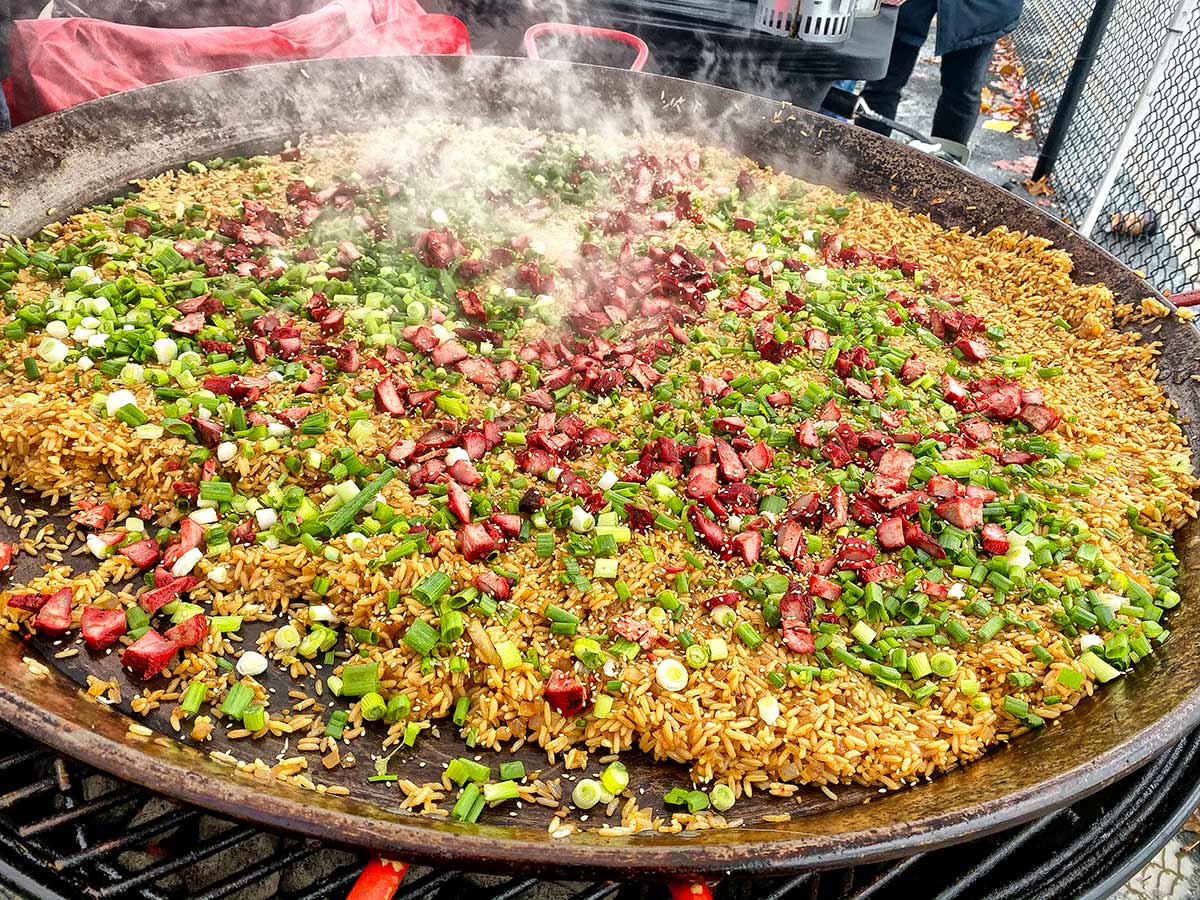 BBQ Pork Fried Rice: This is a huge crowd favorite! We set up a 4ft wide pan and fry the rice right in the middle of the party, hibachi style!