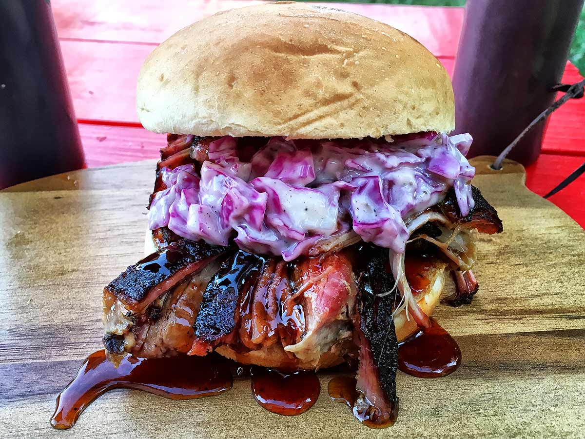 - Pulled Pork, slow smoked over apple and cherry wood for over 12 hours, pulled on site and tossed with our competition BBQ sauce